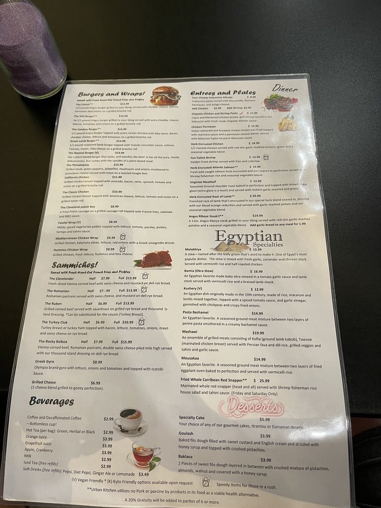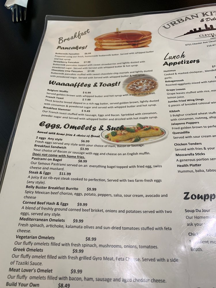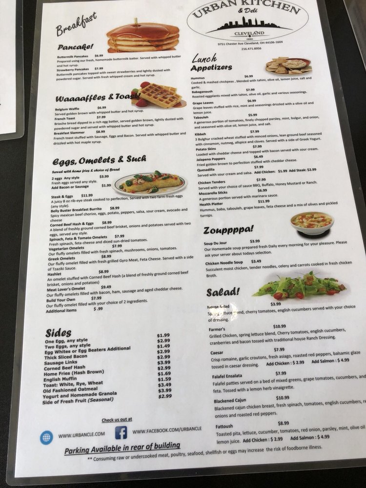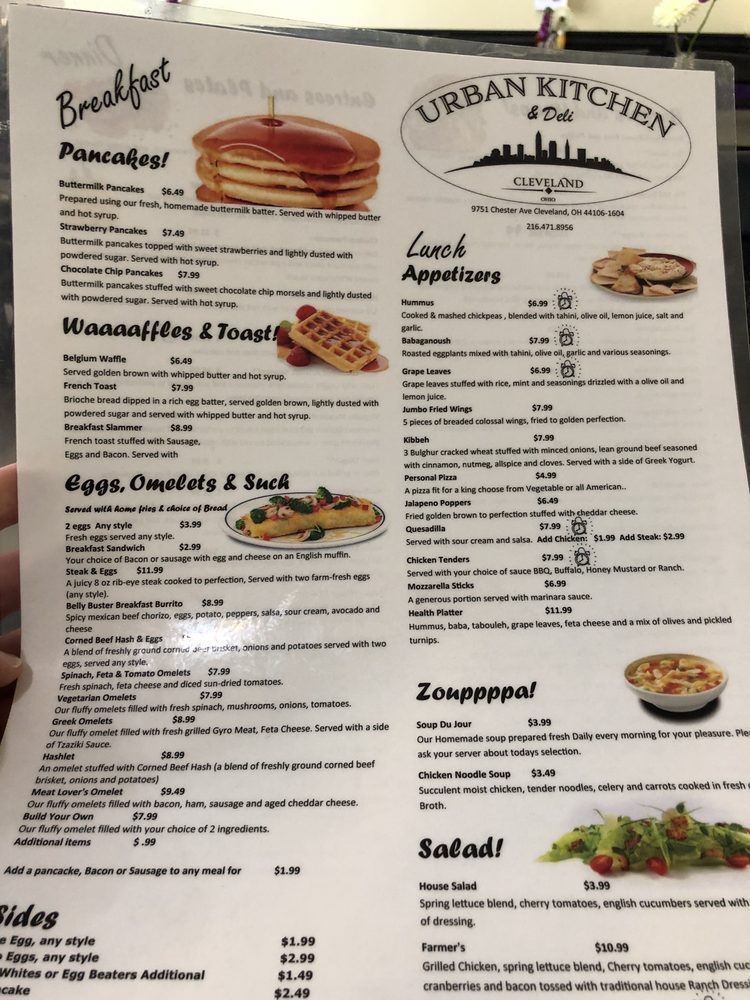 As a food reviewer introducing the brand Urban Kitchen & Deli, located in Cleveland, OH, I am impressed by their diverse menu offerings, including waffles, deli classics, and breakfast options. The restaurant provides a range of utilities such as delivery, takeout, and catering services, making it convenient for customers. With options for vegan dishes and a welcoming atmosphere, Urban Kitchen & Deli caters to a wide range of preferences and needs. Customers have raved about the fresh and tasty breakfast items, with standout dishes like the Buttermilk Pancakes and the Steak & Eggs. The attentive service and cozy ambiance add to the overall dining experience. Overall, Urban Kitchen & Deli is a gem near the Cleveland Clinic that offers a delicious and satisfying meal for any occasion, whether it's brunch, lunch, or dinner.